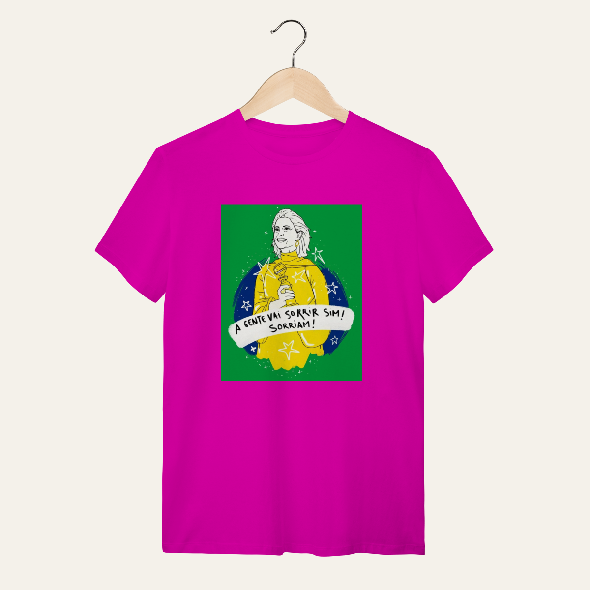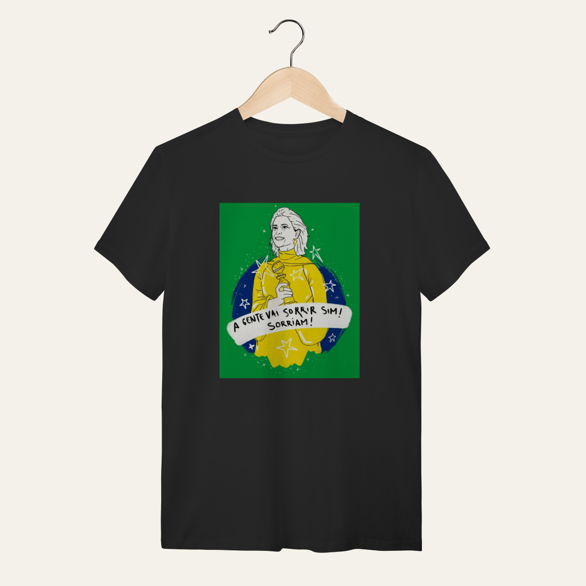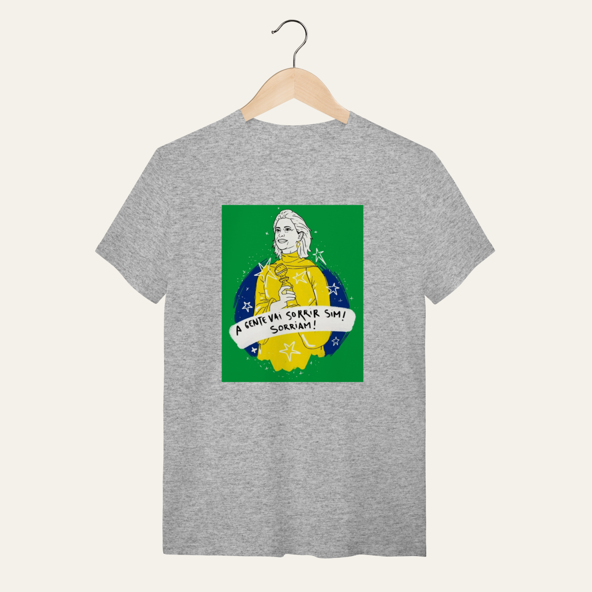 • O que essa peça representa: Esta não é apenas uma camiseta; é um manifesto visual de um momento de glória da nossa cultura. A estampa "A gente vai sorrir sim!" celebra a presença luminosa de Fernanda Torres e a vitória do cinema nacional nos palcos do mundo. Projetada para a categoria Arte e Cinema, ela reafirma que a alegria é uma forma de soberania, servindo como suporte para quem ocupa a rua com orgulho da nossa identidade.
