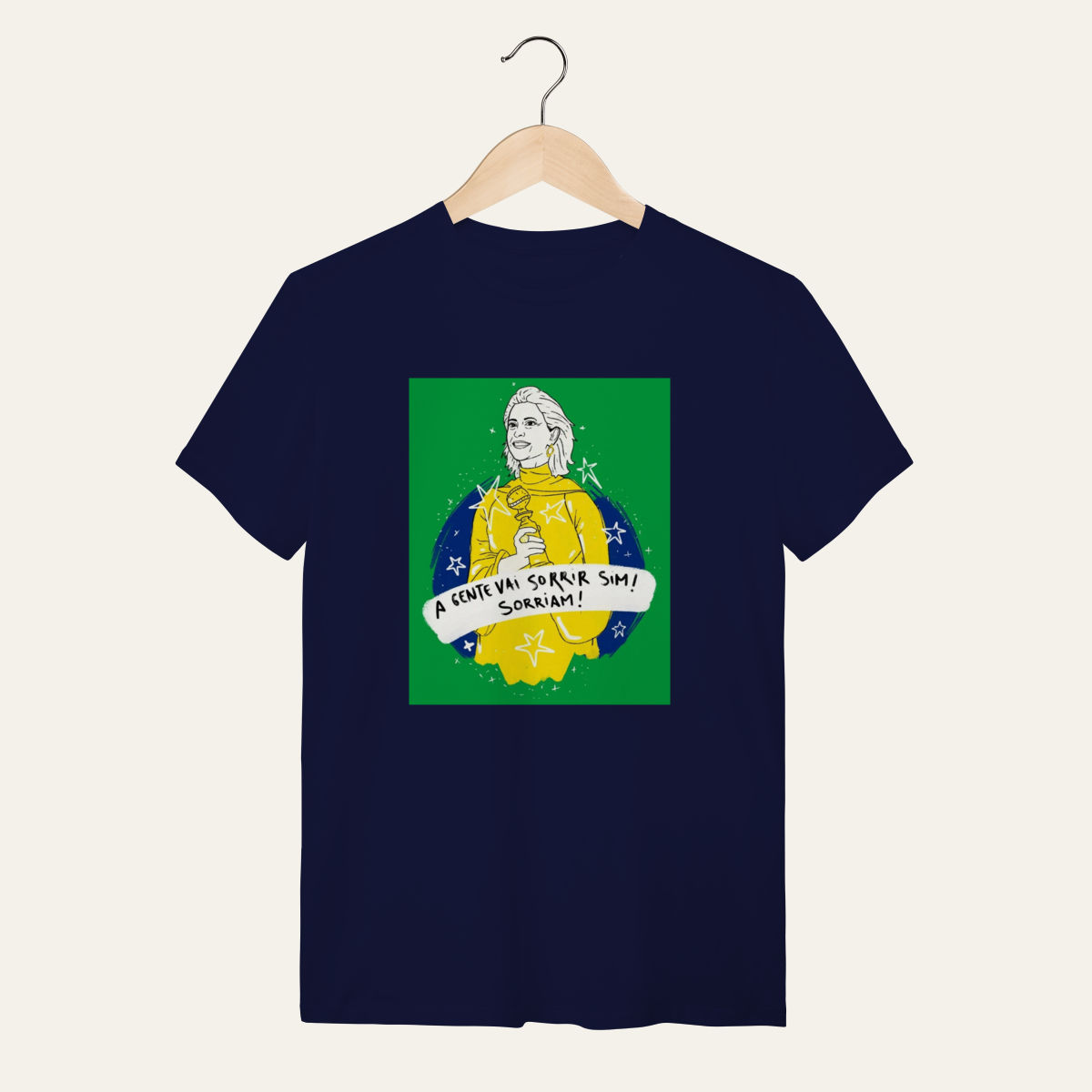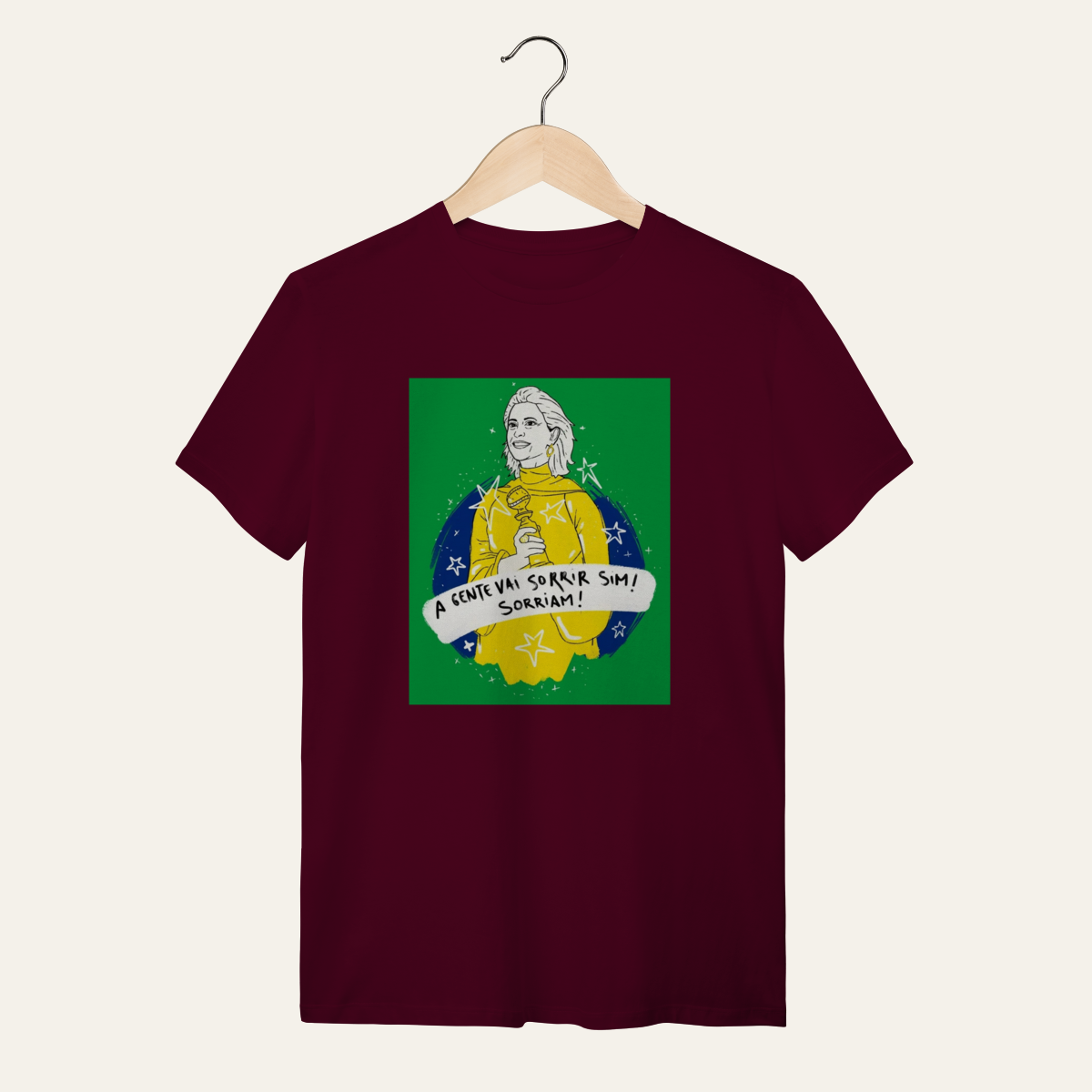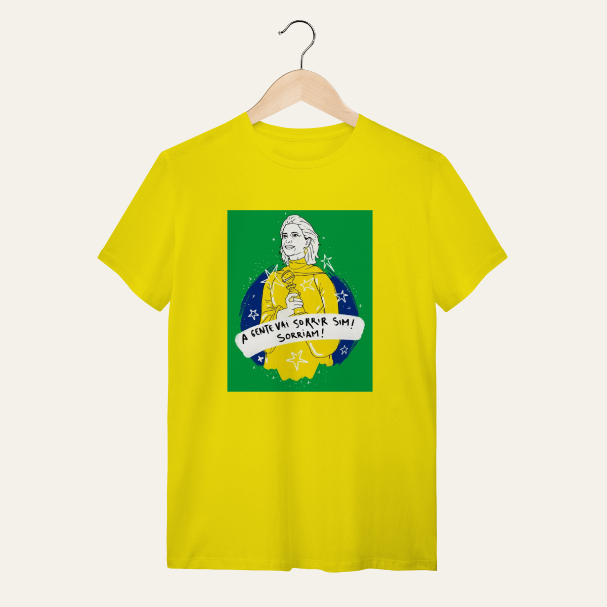 • O que essa peça representa: Esta não é apenas uma camiseta; é um manifesto visual de um momento de glória da nossa cultura. A estampa "A gente vai sorrir sim!" celebra a presença luminosa de Fernanda Torres e a vitória do cinema nacional nos palcos do mundo. Projetada para a categoria Arte e Cinema, ela reafirma que a alegria é uma forma de soberania, servindo como suporte para quem ocupa a rua com orgulho da nossa identidade.