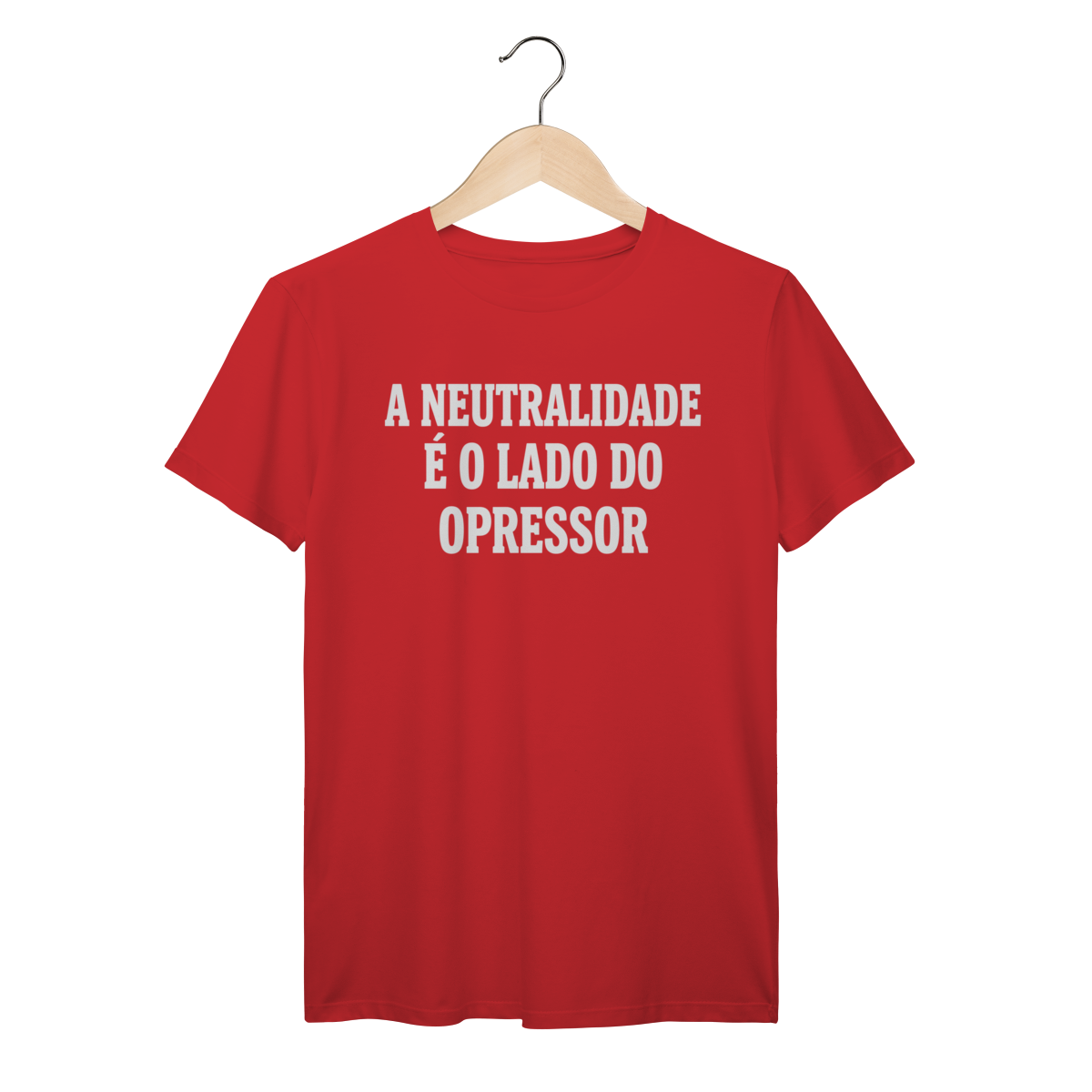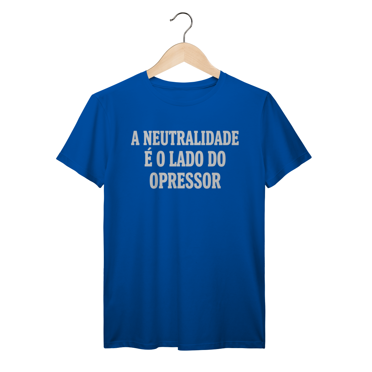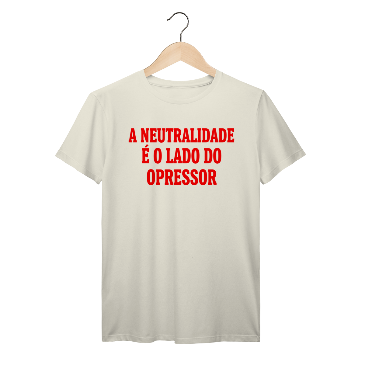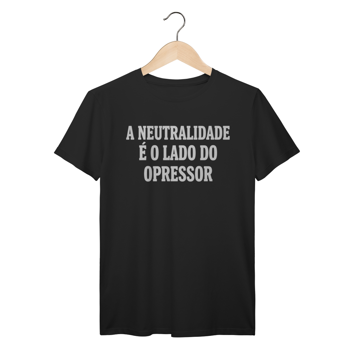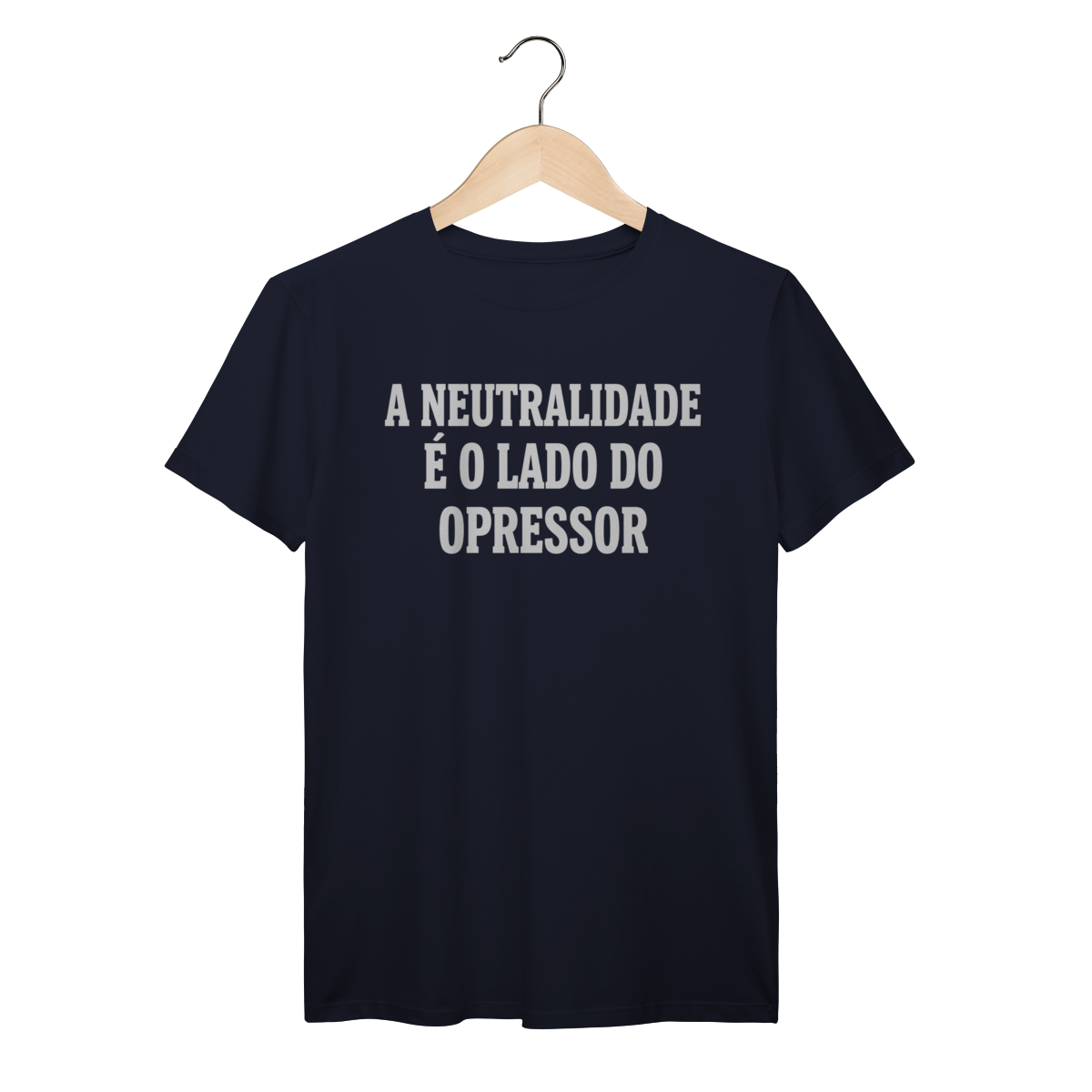 O que essa peça representa: A neutralidade é o rastro do esquecimento, e esta peça da linha Prime-Premium é o antídoto para a indiferença. Inserida na categoria Frases e Ideias, a estampa afirma a soberania intelectual de quem escolhe se posicionar contra toda forma de opressão. Esta é a síntese da Voz Ativa: tirar a ideia do papel e transformá-la em ocupação estética no espaço público, utilizando a moda como suporte para a consciência máxima.