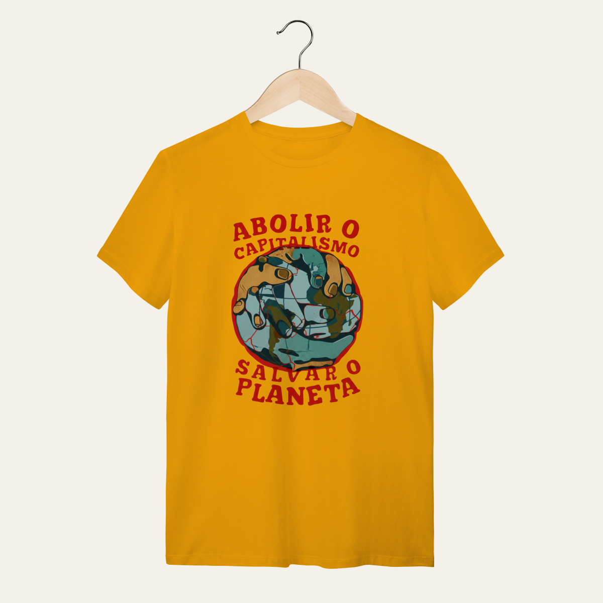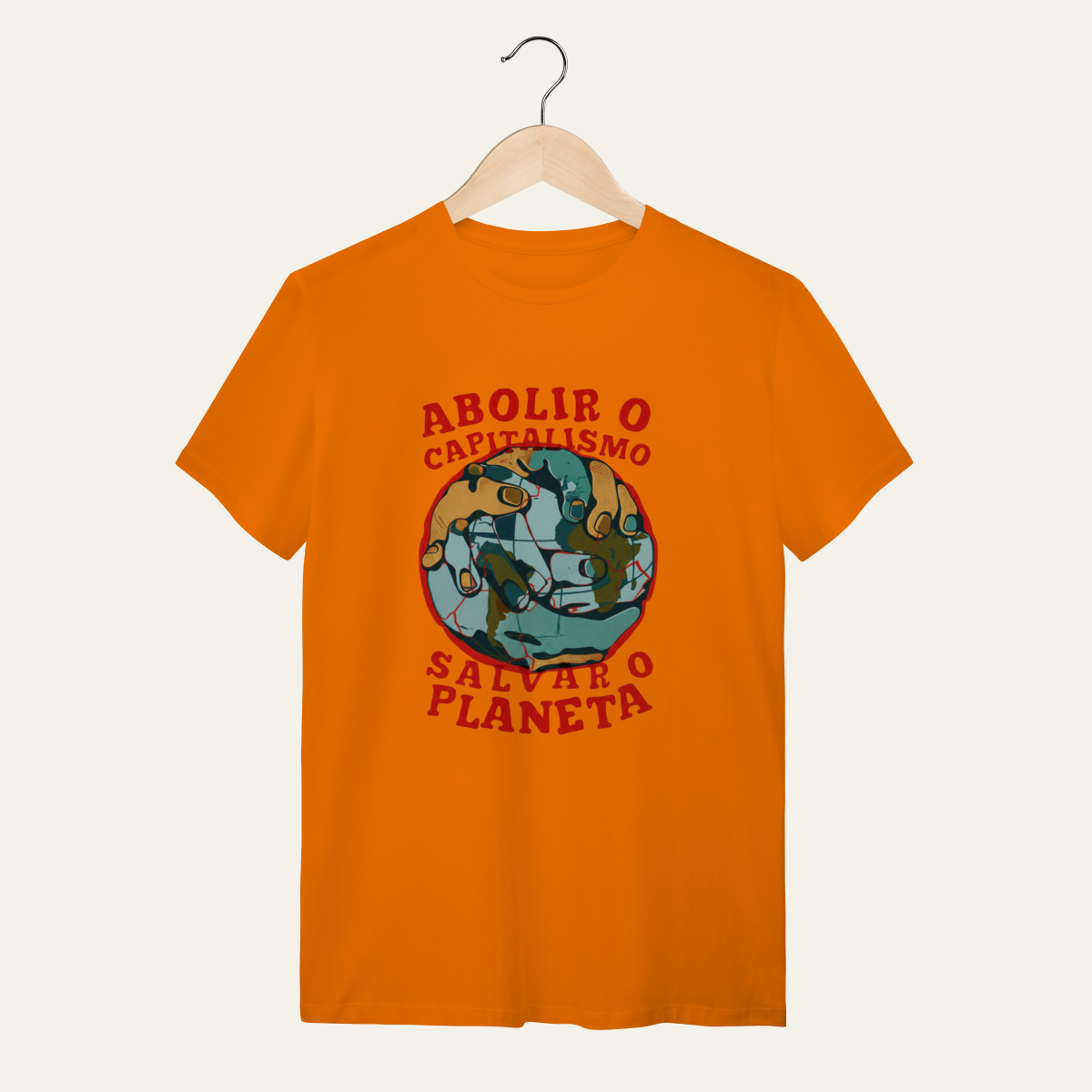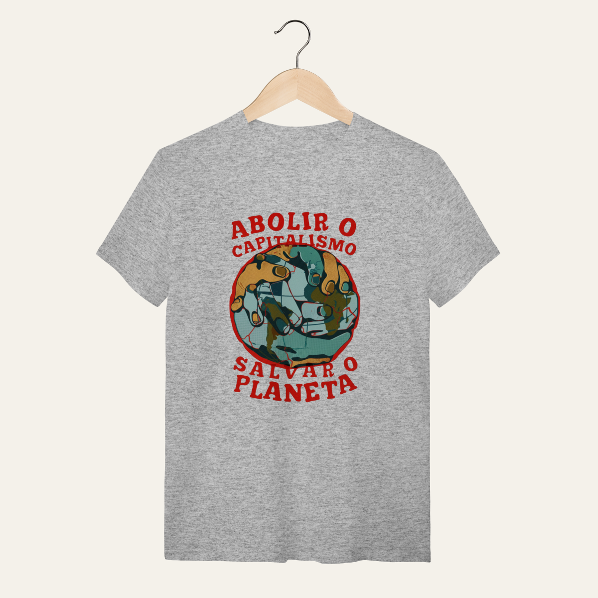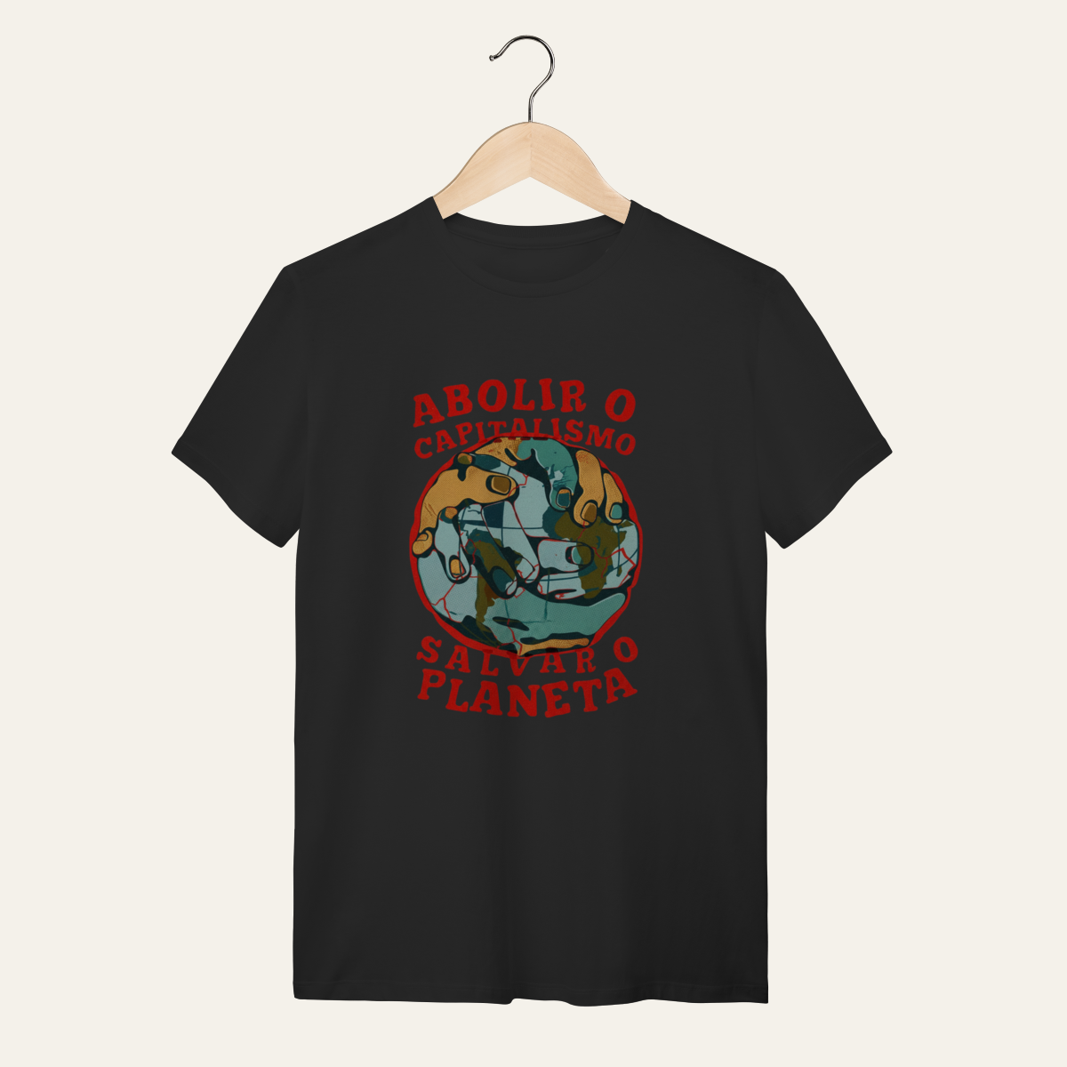 • O que essa peça representa: Esta não é apenas uma camiseta; é um manifesto visual que explica o que defendemos de um jeito fácil de entenderA frase "Abolir o Capitalismo, Salvar o Planeta" é a síntese de um posicionamento que reafirma que não há "Planeta B" dentro da lógica do lucroProjetada para a categoria Terra e Natureza, ela utiliza o design imponente para tirar a consciência ambiental dos livros e levá-la para a rua através de uma mensagem direta.