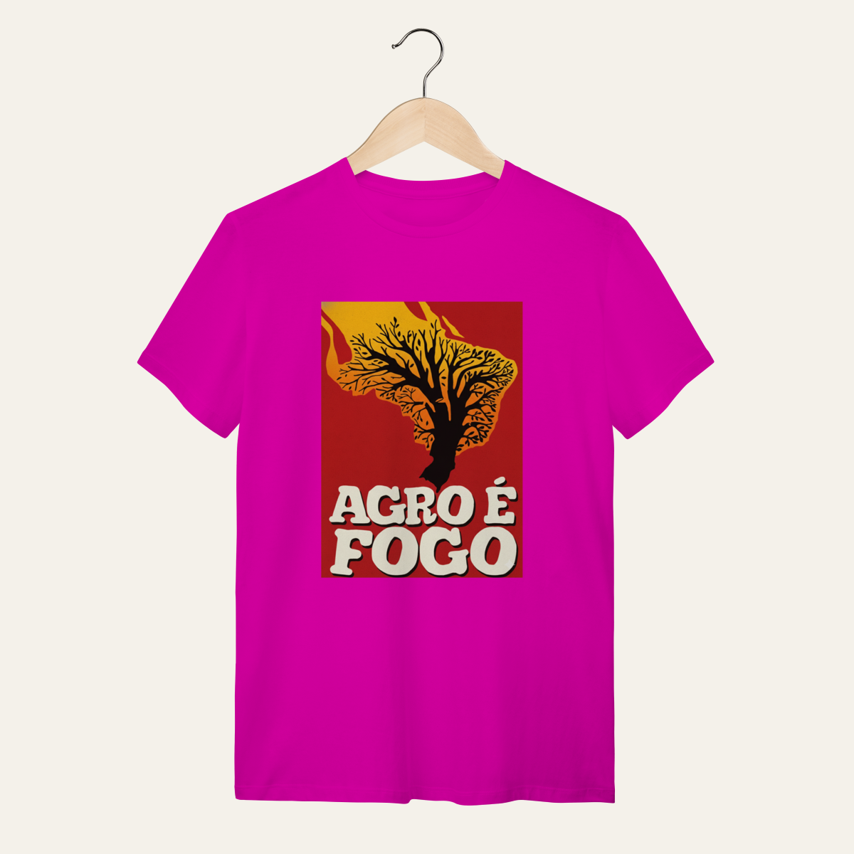 A estampa "Agro é Fogo" é a síntese de um posicionamento que recusa a neutralidade e reafirma a soberania nacional no cotidiano.