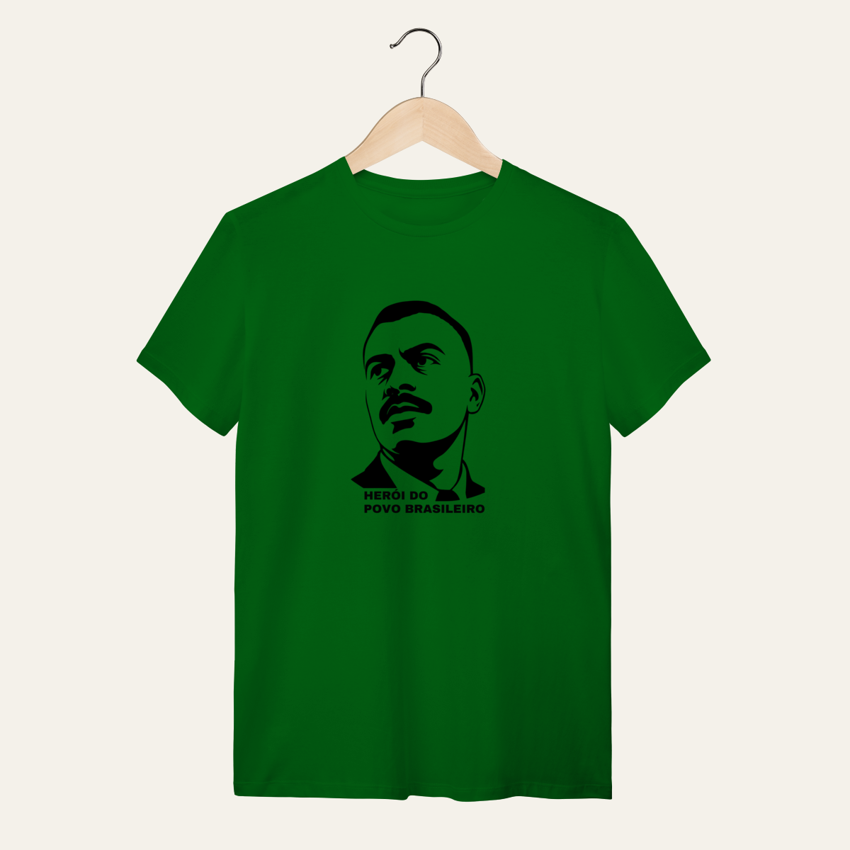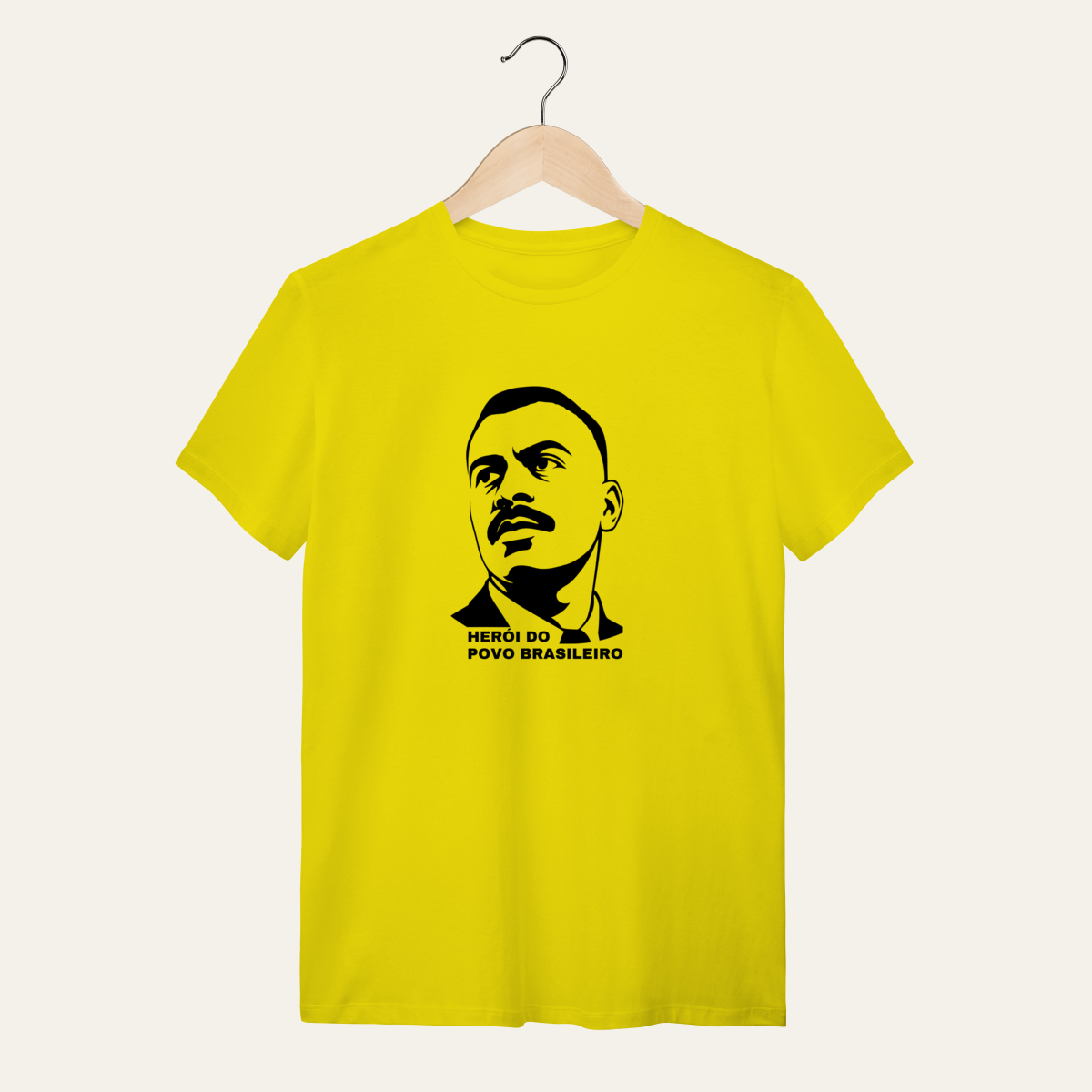 • O que essa peça representa: Esta não é apenas uma camiseta; é um manifesto visual de um momento histórico. A silhueta em alto contraste de Carlos Marighella acompanhada da afirmação "Herói do Povo Brasileiro" é a síntese de um posicionamento que recusa a neutralidade e reafirma a soberania popular no cotidiano. Projetada para a categoria de Heróis do Povo, ela resgata a memória de quem não se calou, servindo como suporte para quem ocupa a rua para transformar a teoria em prática.