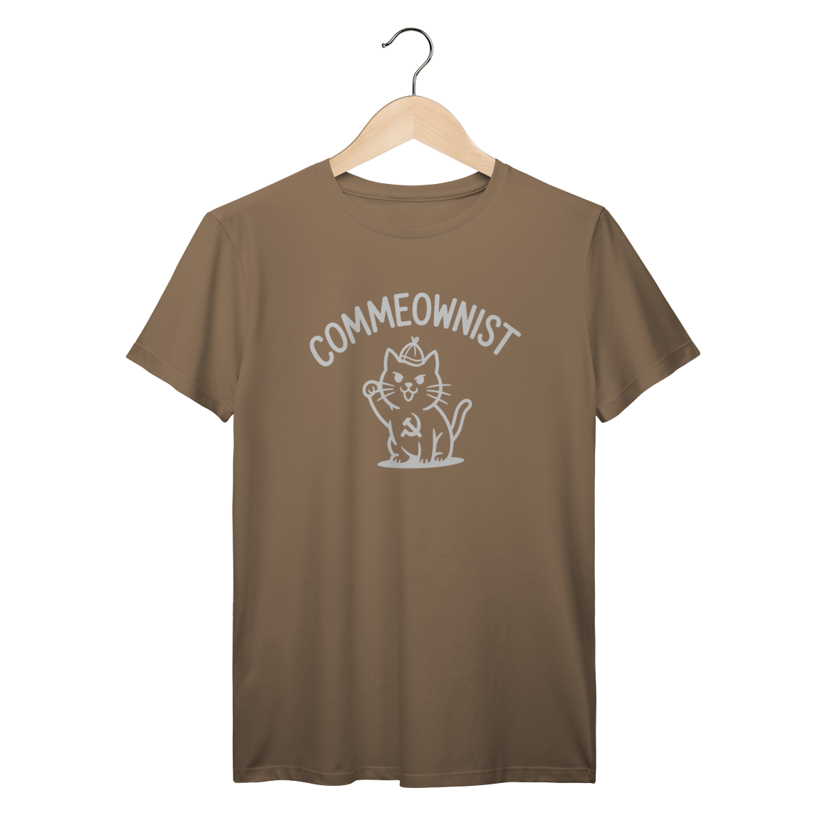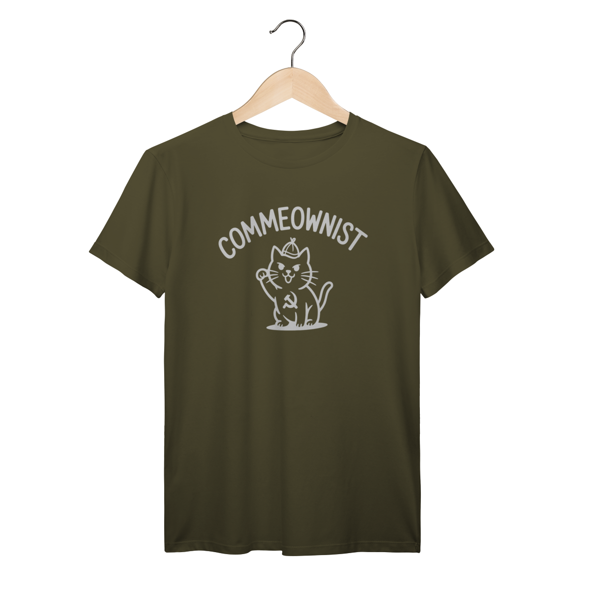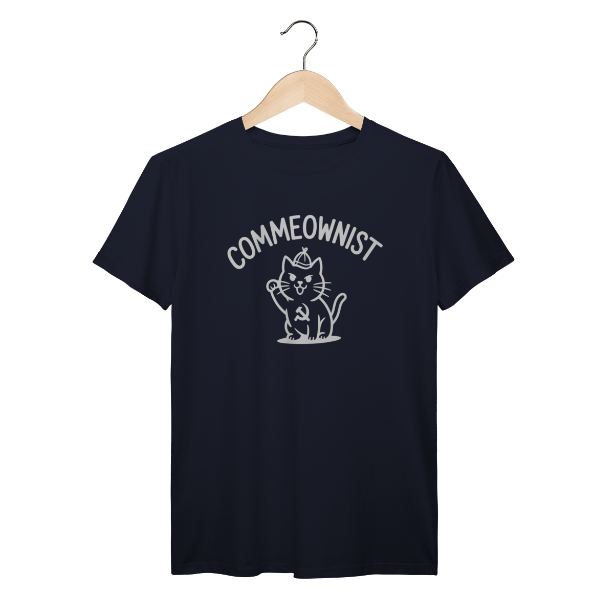 O que essa peça representa: Esta peça é a síntese do nosso "Dress Code da Luta". Enquadrada na categoria Sátira Ativa, a "Commeownist" utiliza o sarcasmo visual para pautar a soberania popular de forma criativa e imponente. Projetada para quem reconhece que a revolução também ocupa o campo do humor, esta camiseta da linha Prime-Premium oferece o suporte definitivo para quem escolhe ter lado com o máximo de sofisticação e acidez.