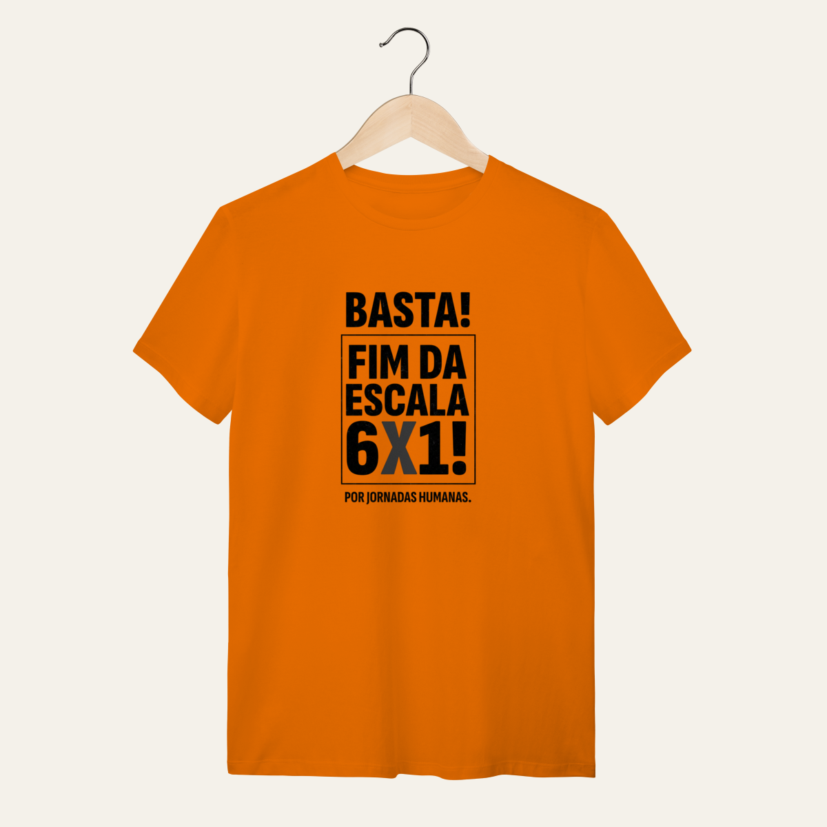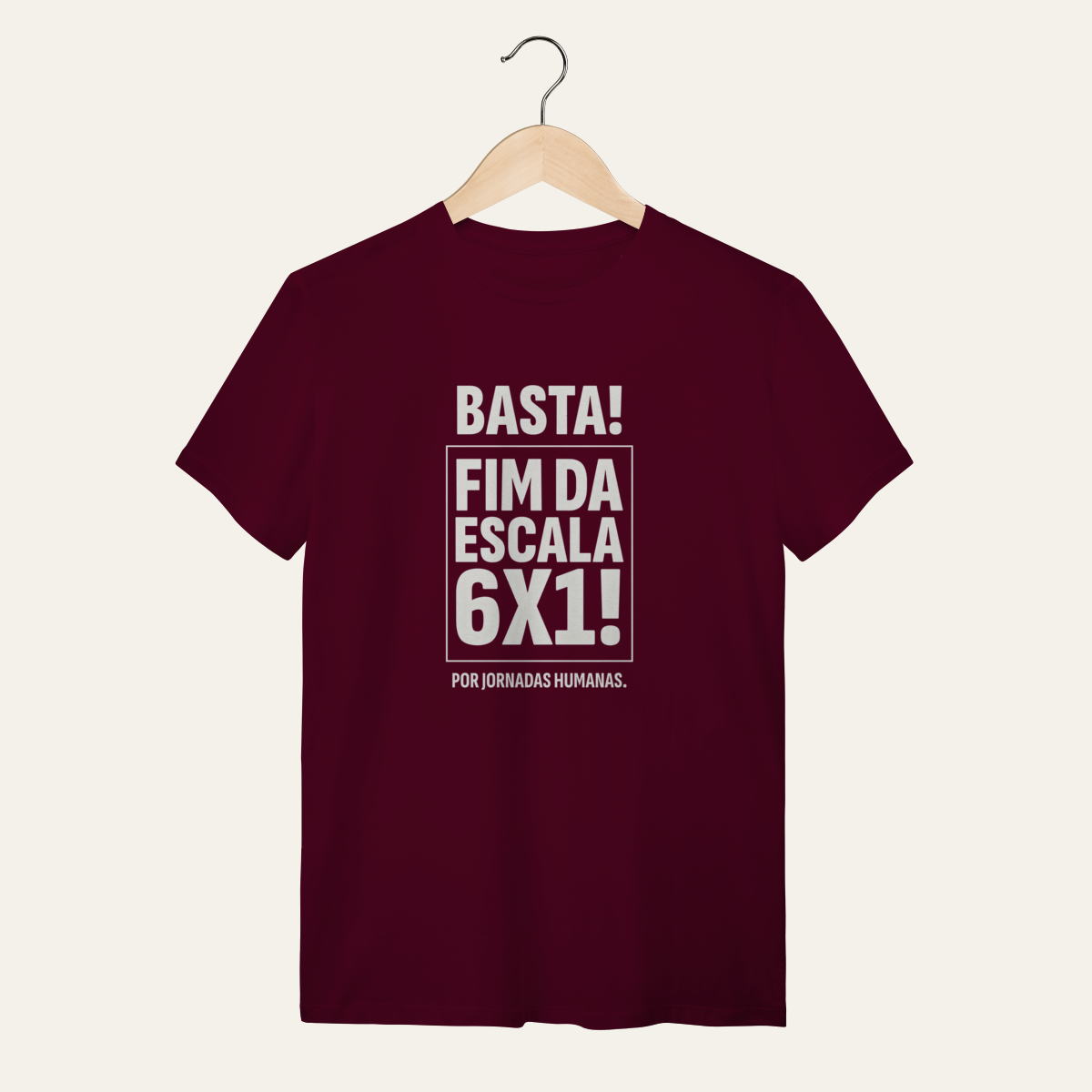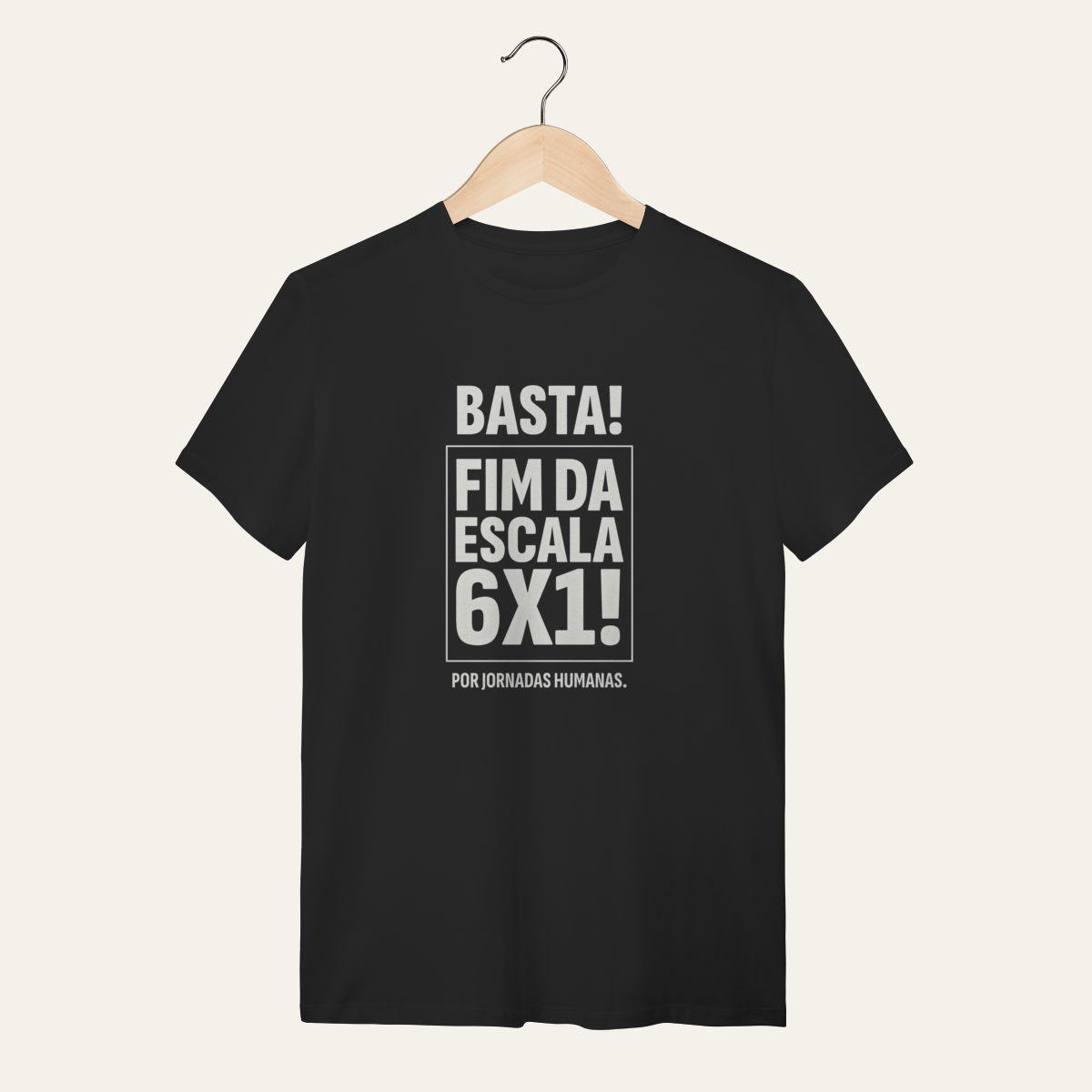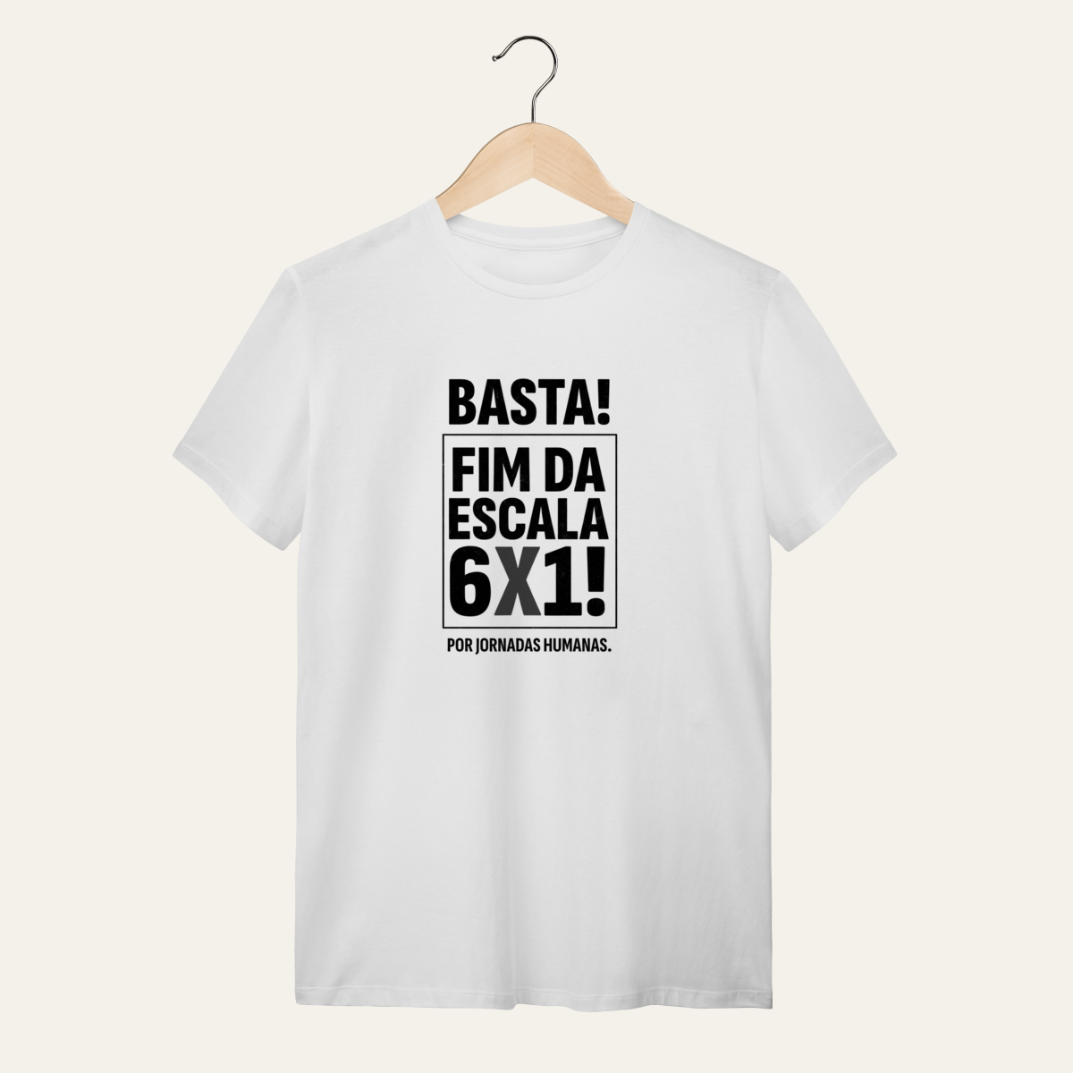 • O que essa peça representa: Esta não é apenas uma camiseta; é um manifesto visual de um momento históricoA afirmação "Basta! Fim da Escala 6x1" é a síntese de um posicionamento que recusa a neutralidade e reafirma a soberania popular no cotidianoProjetada para a categoria Saúde e Trabalho, ela utiliza letras grandes e fáceis de ler para pautar o direito de trabalhar para viver, e não viver para trabalhar.