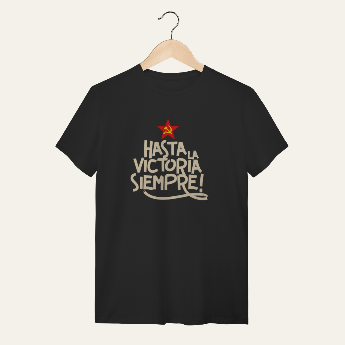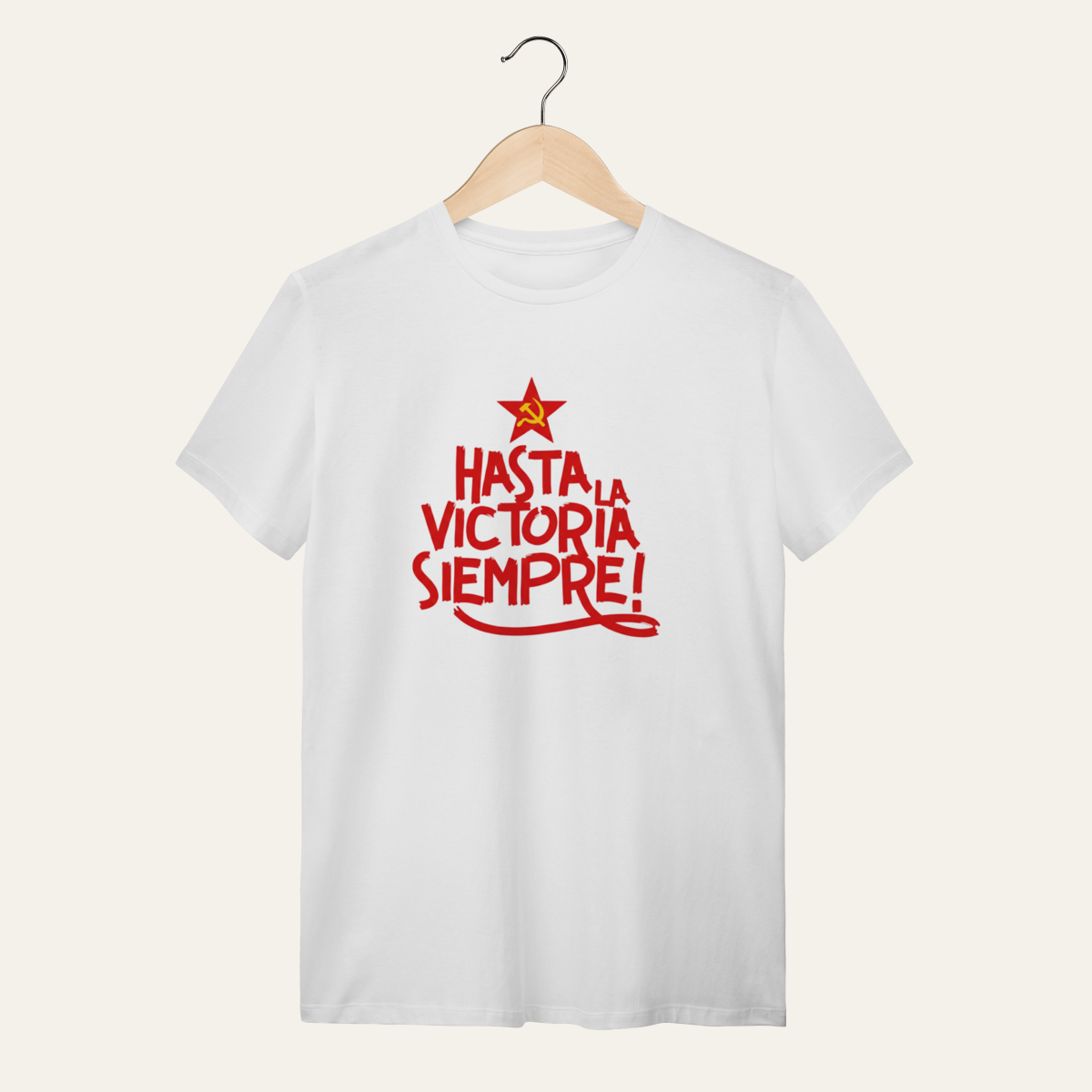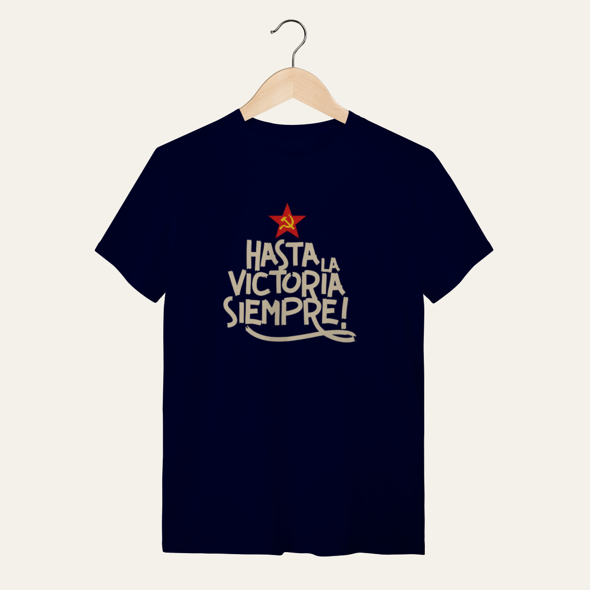 • O que essa peça representa: Esta não é apenas uma camiseta; é um manifesto visual de um momento histórico. A icônica frase "Hasta la Victoria Siempre" é a síntese de um posicionamento que recusa a neutralidade e reafirma a soberania popular no cotidiano. Projetada para a categoria Socialismo no Mundo, ela resgata o espírito de resistência e solidariedade entre os povos, servindo como suporte para quem ocupa a rua para transformar a teoria em prática.