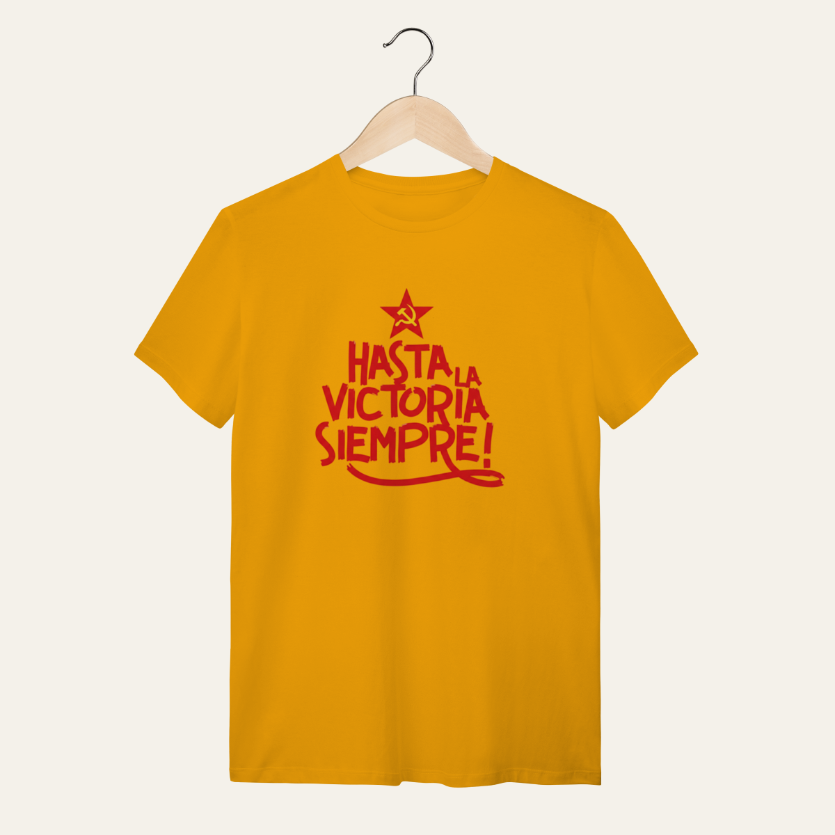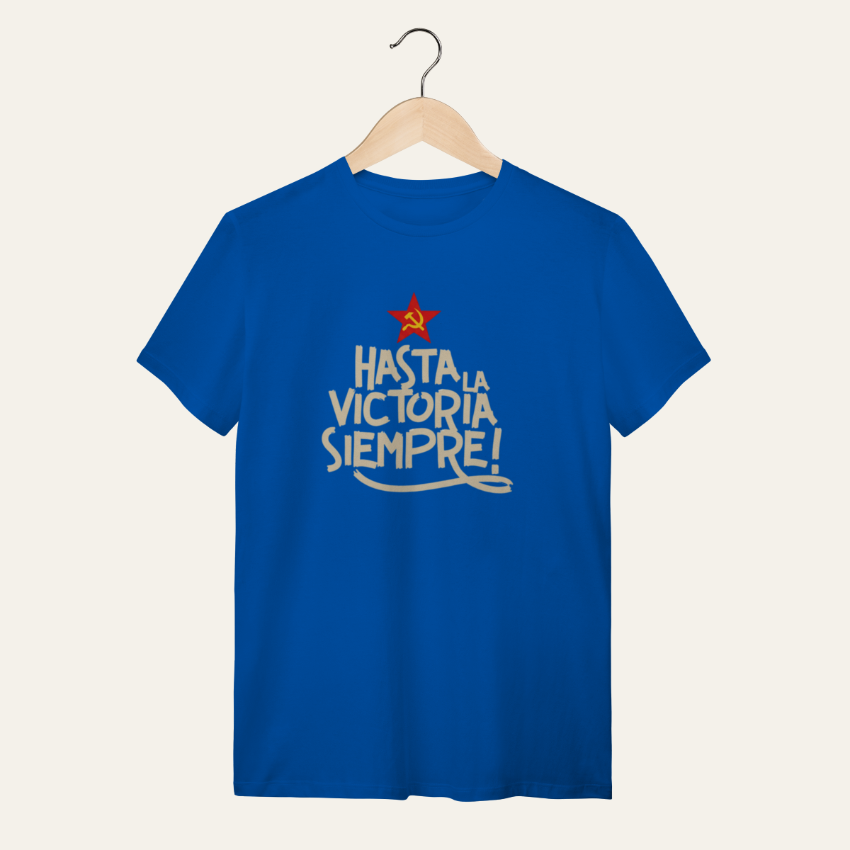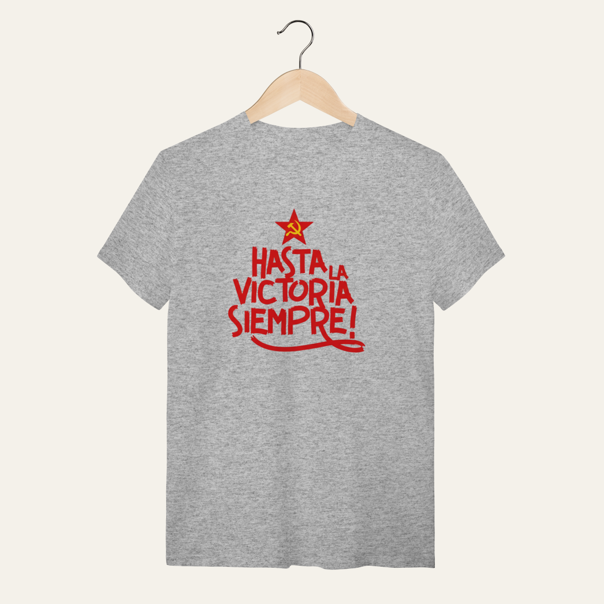 • O que essa peça representa: Esta não é apenas uma camiseta; é um manifesto visual de um momento histórico. A icônica frase "Hasta la Victoria Siempre" é a síntese de um posicionamento que recusa a neutralidade e reafirma a soberania popular no cotidiano. Projetada para a categoria Socialismo no Mundo, ela resgata o espírito de resistência e solidariedade entre os povos, servindo como suporte para quem ocupa a rua para transformar a teoria em prática.
