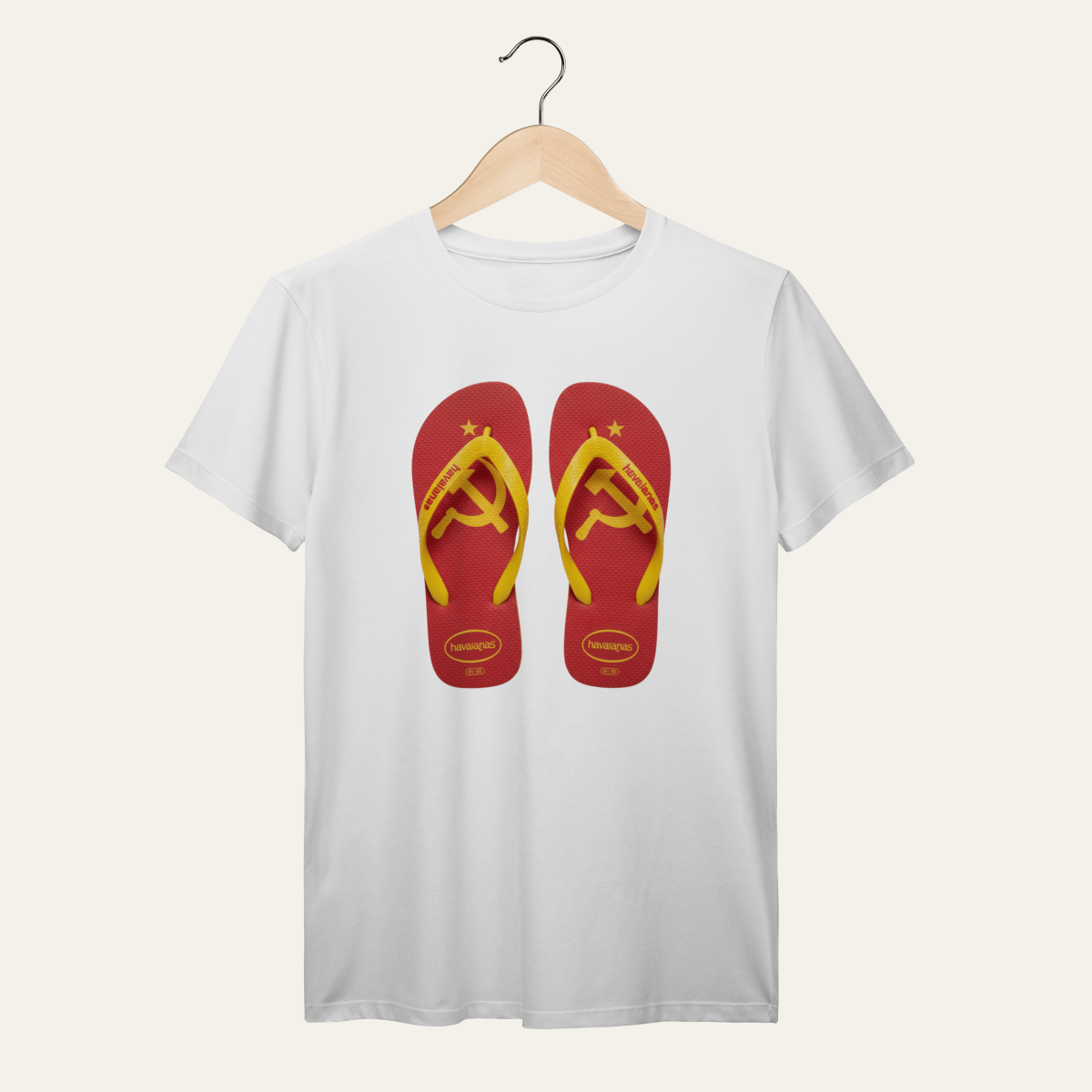 • A poderosa união da foice e do martelo sobre um suporte clássico do cotidiano reafirma que a Soberania popular deve ocupar todos os terrenos, do asfalto à areia.