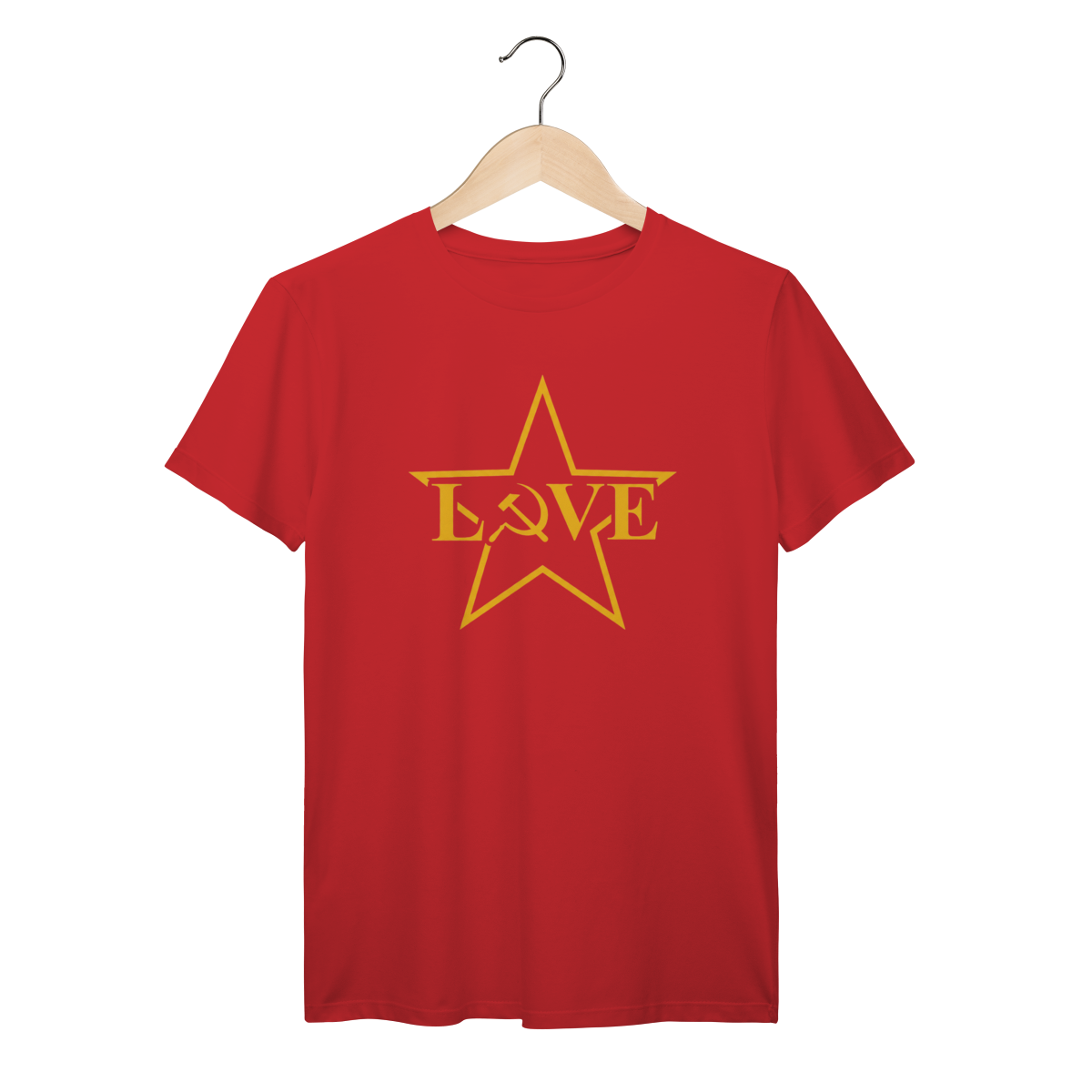 O que essa peça representa: Esta peça é a síntese do Design Minimalista e da Consciência Máxima. A estampa "Love" subverte a estética pop para celebrar as experiências históricas de soberania popular e a força do trabalhador. É um manifesto visual imponente que utiliza o contraste do vermelho e dourado para reafirmar que não há neutralidade no rastro do esquecimento. Projetada para quem exige superioridade técnica e rigor ideológico, esta peça da linha Prime-Premium é o suporte definitivo para levar a teoria para a pele e a ocupação para o espaço.