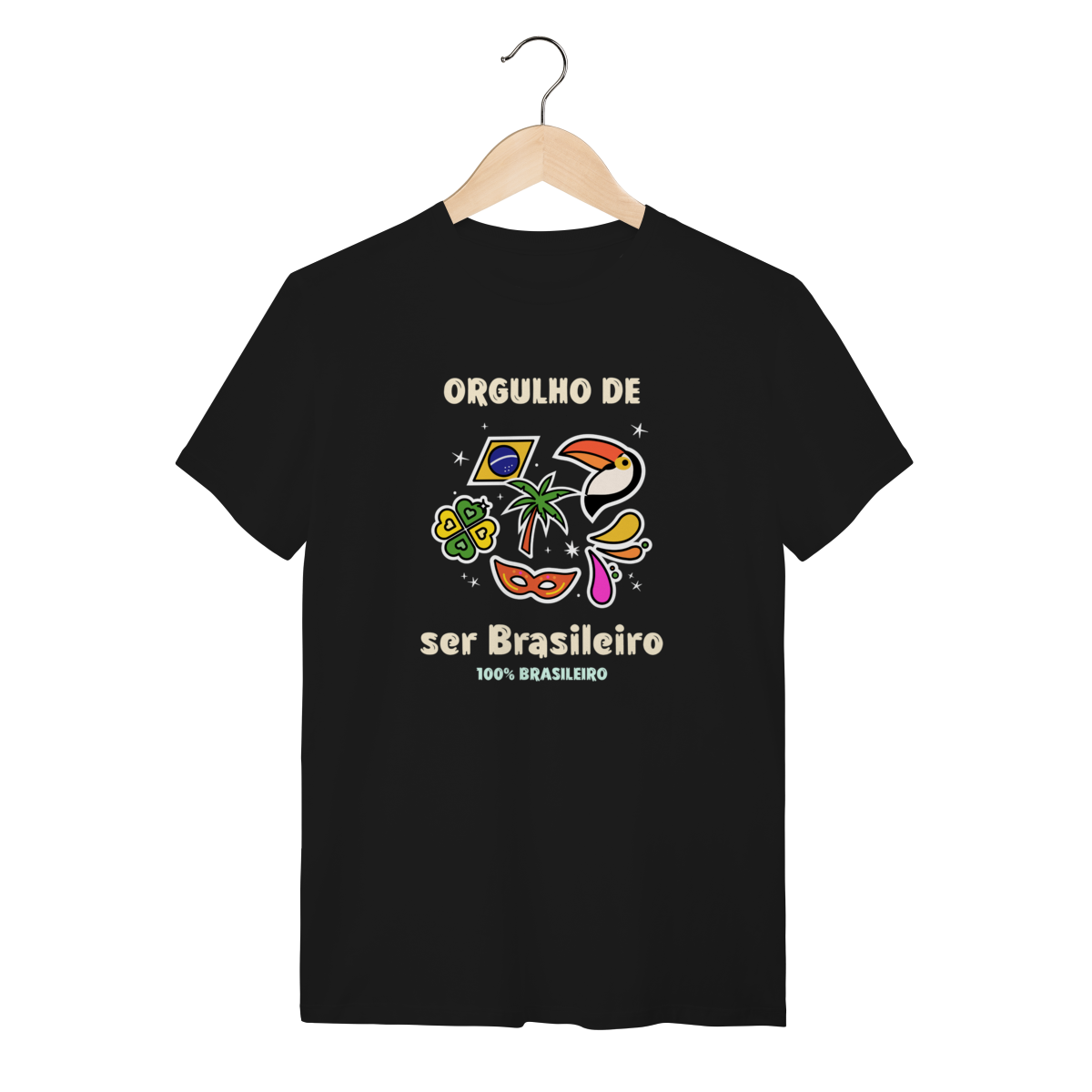 O que essa peça representa: Esta não é uma celebração vazia de nacionalismo liberal; é a retomada dos nossos símbolos pela classe trabalhadora. Na categoria Luta e Resistência, esta estampa resgata o "Orgulho de Ser Brasileiro" através da nossa fauna, nossa cultura e nossa biodiversidade, subvertendo a apropriação estética da extrema-direita. O tucano, a palmeira, o carnaval e a nossa bandeira aparecem aqui como ícones de um povo que resiste e ocupa o território com alegria e soberania. É o Brasil real, 100% popular, que não se curva e reconhece na sua identidade a base da sua força revolucionária.