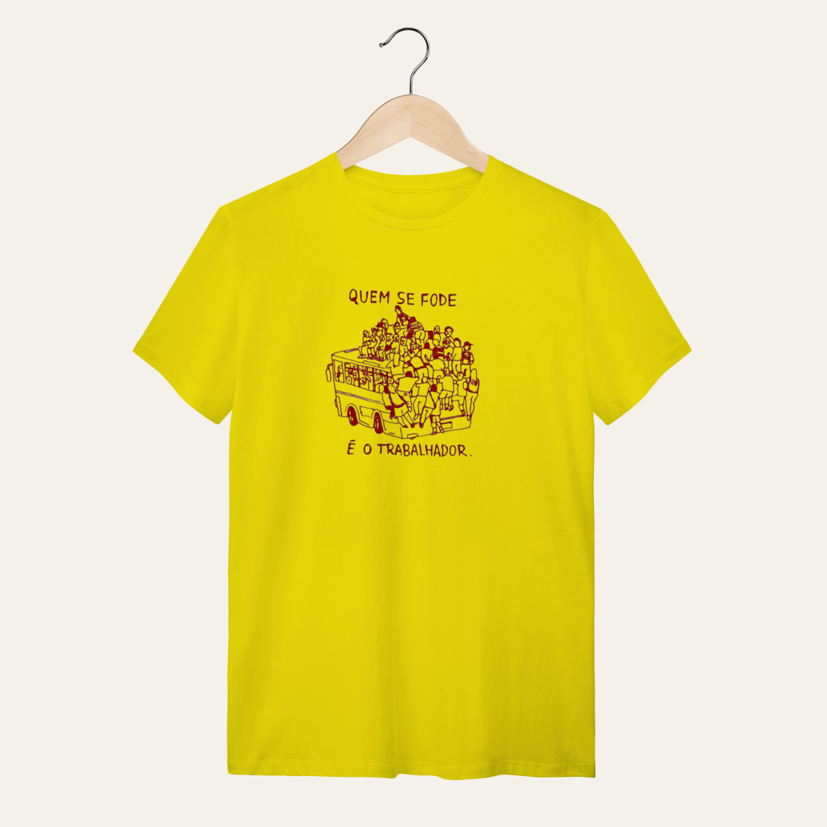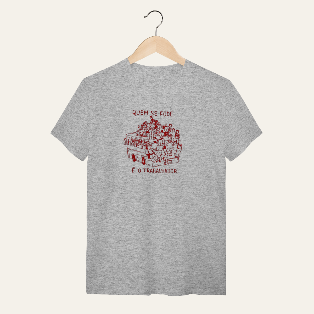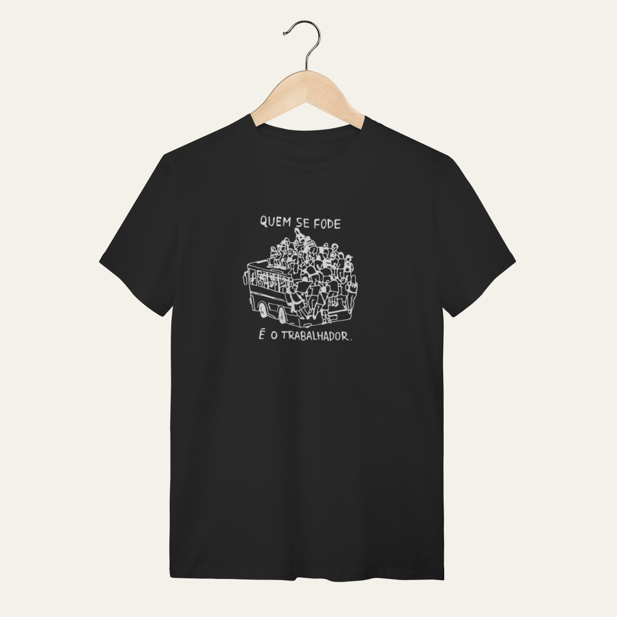 • O que essa peça representa: Esta não é apenas uma camiseta; é um manifesto visual de um momento históricoA estampa que expõe o caos do transporte público com o humor ácido de "Quem se fode é o trabalhador" é a síntese da Sátira Ativa, utilizando o escárnio para recusar a neutralidade e reafirmar a soberania popular no cotidianoProjetada para levar as ideias das ruas para o tecido, ela subverte a precariedade com uma crítica direta, servindo como suporte para quem ocupa o espaço com irreverência.