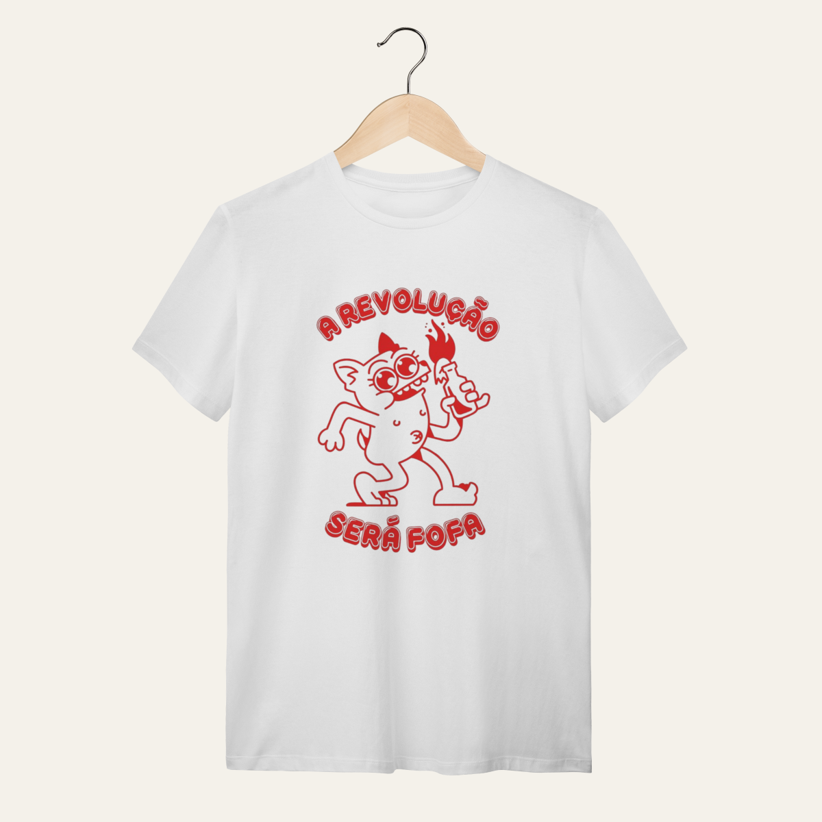 • O que essa peça representa: Esta não é apenas uma camiseta; é um manifesto visual de um momento históricoA estampa "A Revolução Será Fofa" é a síntese da Sátira Ativa, utilizando o humor para recusar a neutralidade e reafirmar a soberania popular no cotidianoProjetada para quem ocupa a rua com irreverência, ela subverte o imaginário tradicional da luta com uma estética leve, mas uma mensagem direta de mudança.