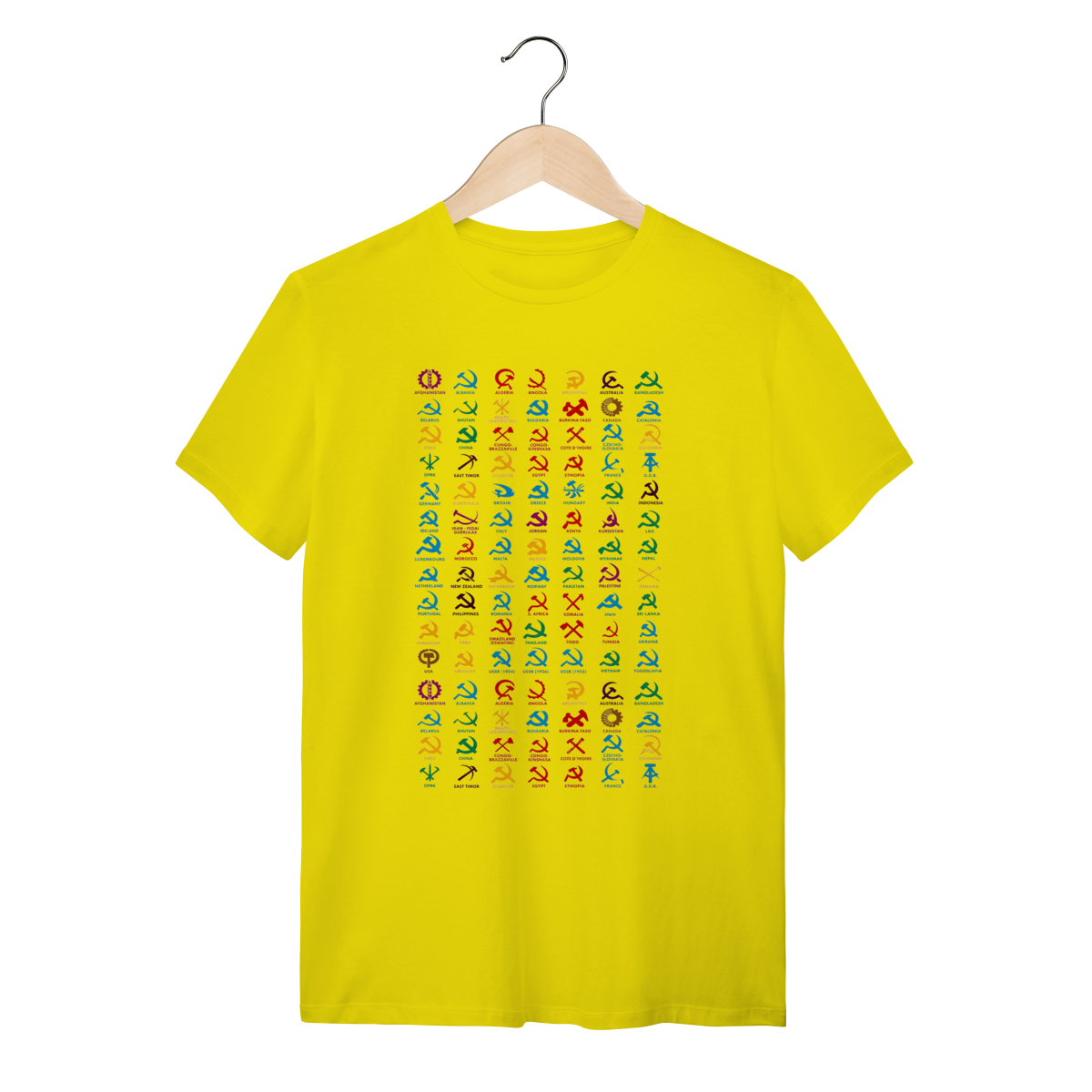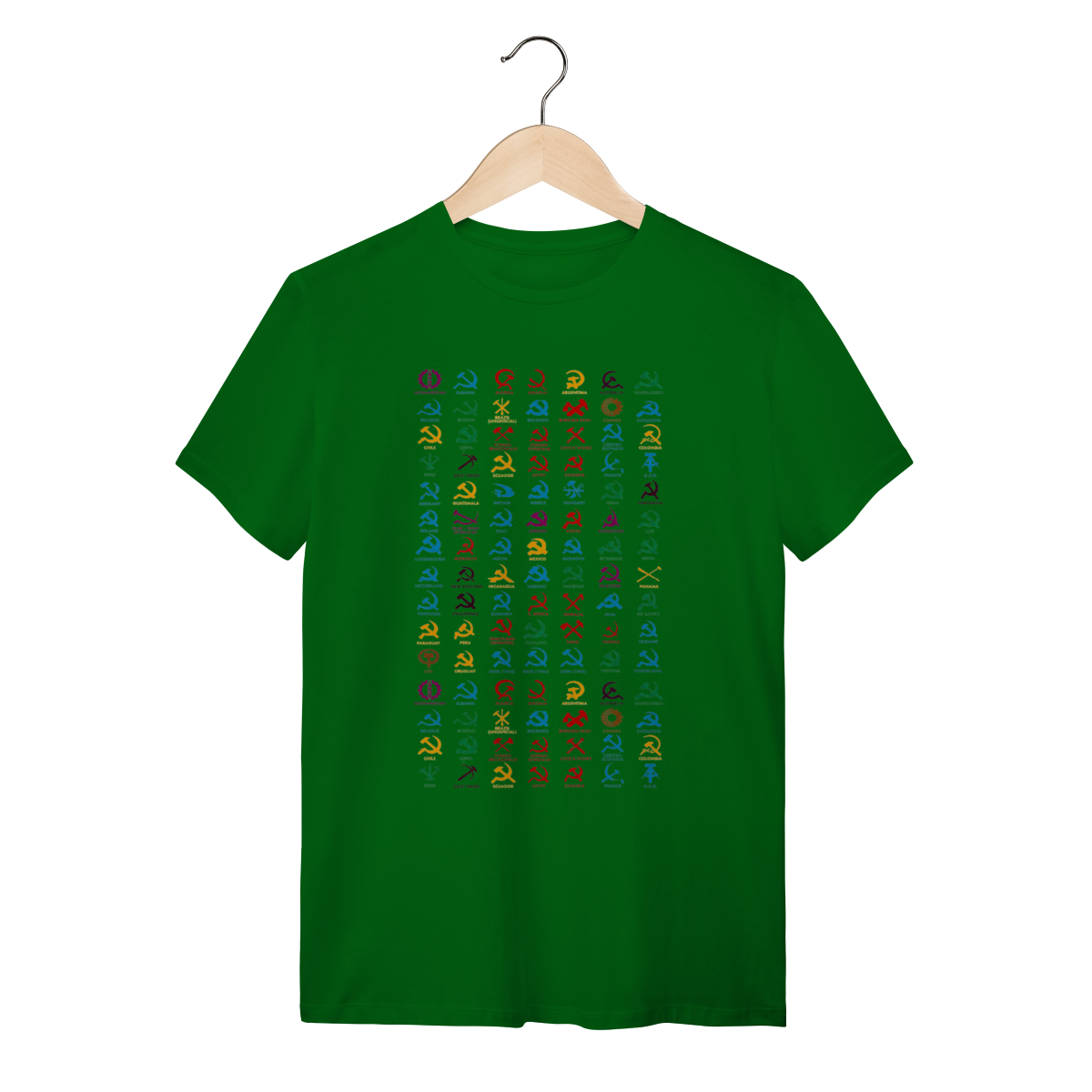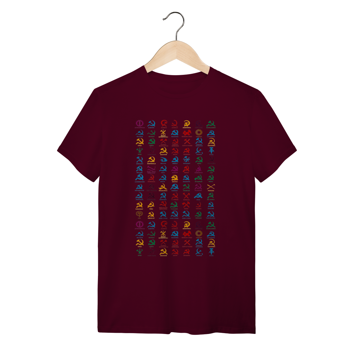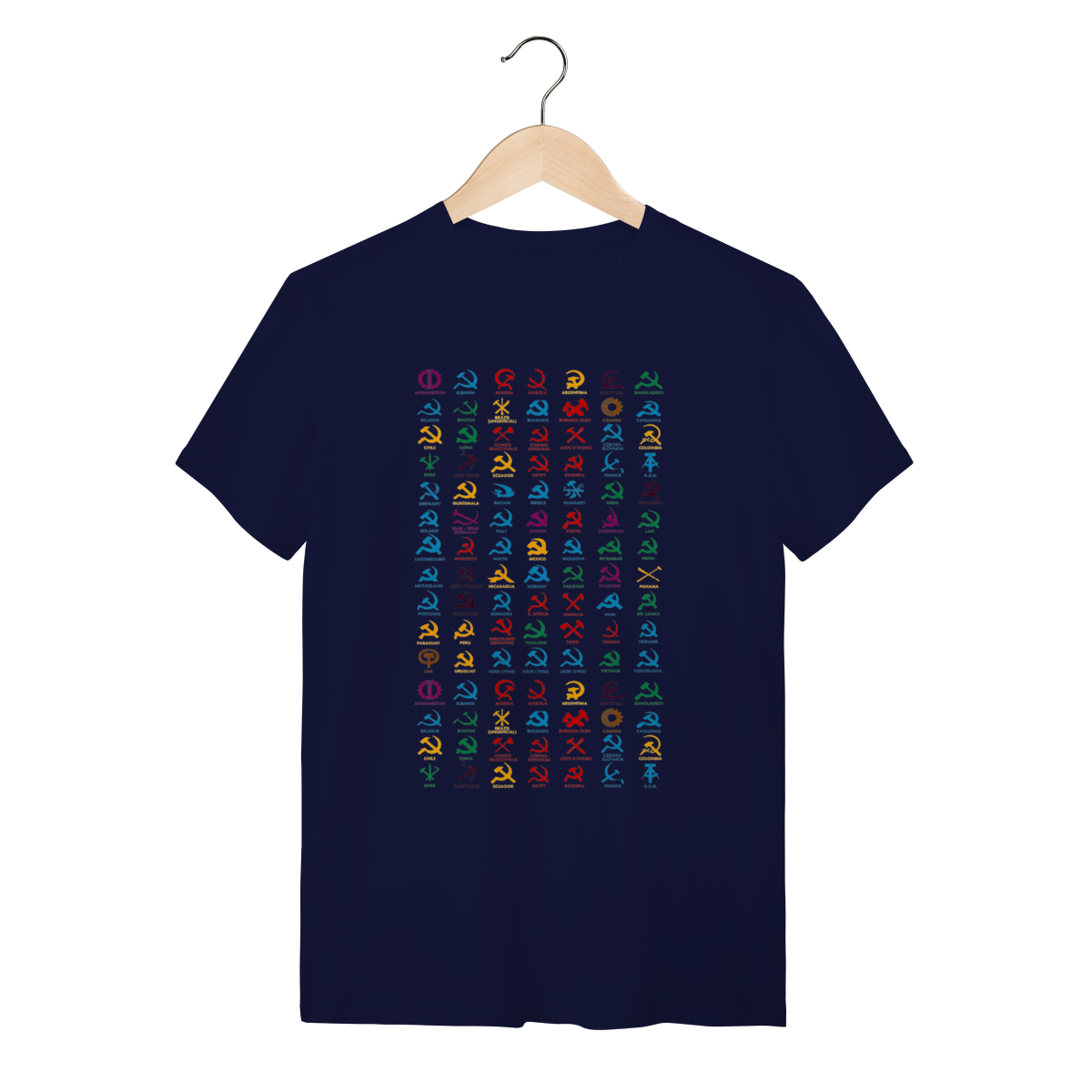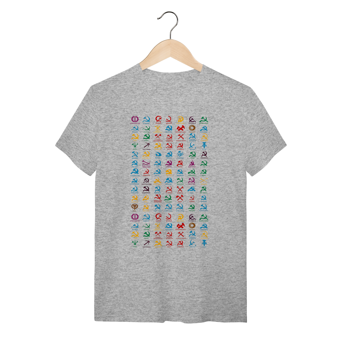 O que essa peça representa: Esta não é apenas uma estampa; é um registro histórico da ocupação simbólica e estética ao redor do globo. Reunindo variações clássicas da foice, do martelo e de engrenagens, esta peça celebra a força do trabalhador em diferentes contextos geográficos e políticos. O design minimalista e direto tira as ideias dos livros e as leva para a rua, transformando a vestimenta em um grito de soberania popular que recusa a hegemonia sistêmica.