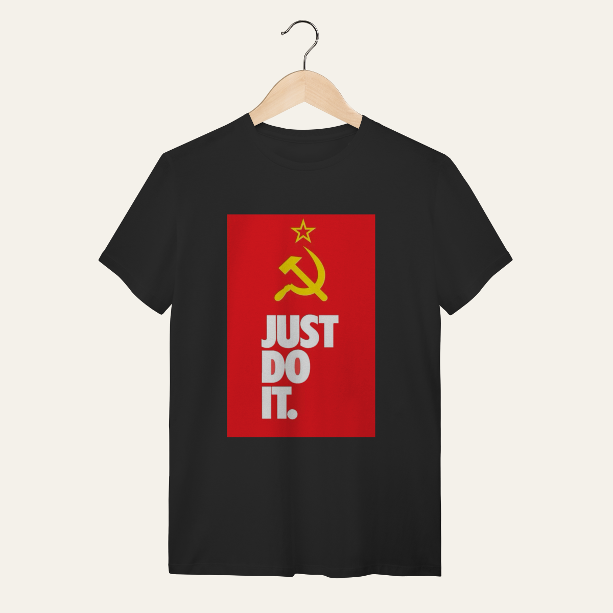 • O que essa peça representa: Esta não é apenas uma camiseta; é um manifesto visual de um momento históricoA apropriação do slogan "Just Do It" sob os símbolos da foice e do martelo é a síntese de um posicionamento que recusa a neutralidade e reafirma a soberania popular no cotidianoProjetada para a categoria Socialismo no Mundo, ela traz uma releitura pop e direta da urgência da ação coletiva, servindo como suporte para quem ocupa a rua para transformar a teoria em prática.