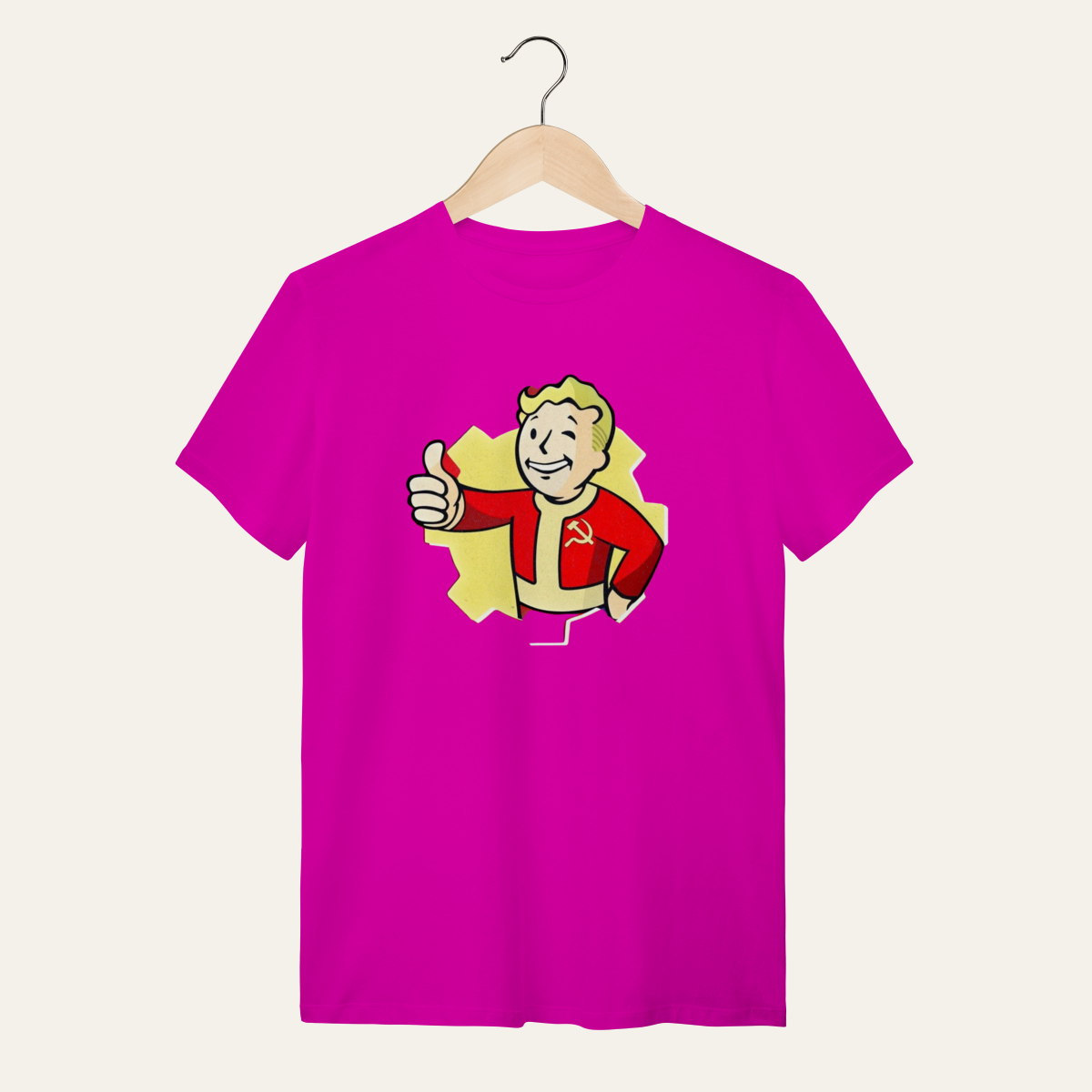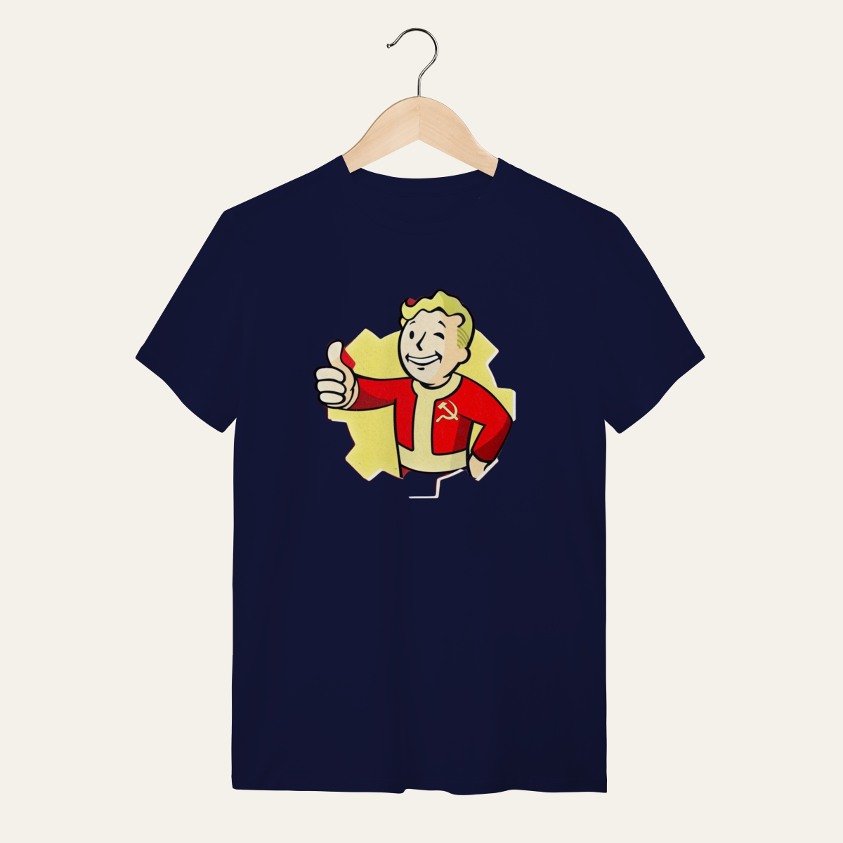 • A estampa do Vault Boy com a foice e o martelo é a síntese de um posicionamento que recusa a neutralidade e aplica a teoria na prática em cada detalhe do cotidiano.